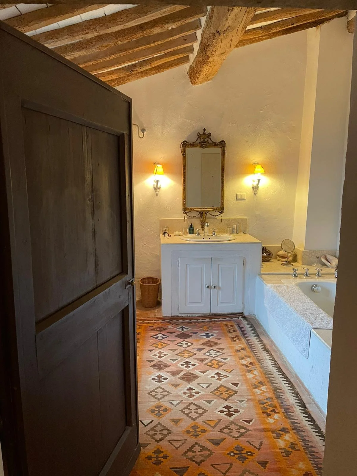 At Arniano we have five double bedrooms on the upper floor. Three are en suite: The Master, The Pink Room (both with bath and shower) and The White Room (shower only). The Blue Room and The Yellow Room share a very large bathroom across the corridor (bath and shower). Both the Blue and Yellow can be made made up as twins and so are ideal for friends sharing and in the case of the Blue Room can be made up into a king sized bed for couples.