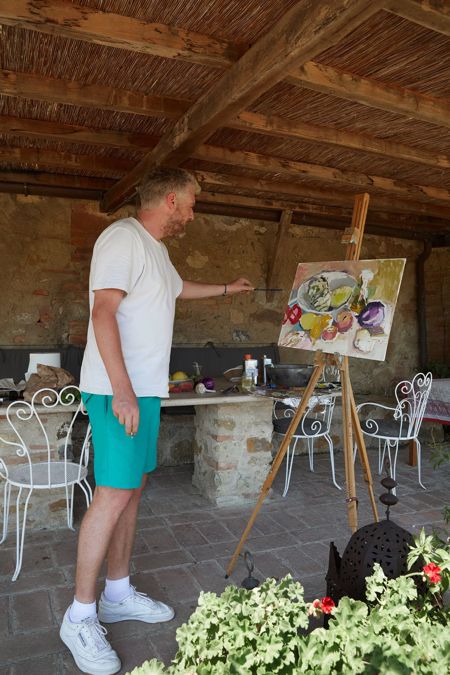 "Arniano is a wonderful setting. William's gentle but disciplined teaching allowed us to develop our creative skills with confidence in landscapes, still lives and portraits. Amber cooked feasts for us everyday which looked so attractive and tasted sublime with all the advantages of delicious local ingredients. The house has spectacular views, a great atmosphere with a large open fire and attractive cosy rooms".